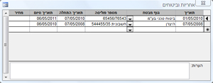 לחיצה על כפתור 'פתיחה להצגה ועידכון' בחלון המציג את רשימת הפריטים, תפתח את החלון המציג את כל פרטי הפריט.